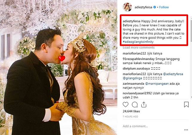- Rayakan 2 Tahun Pernikahan Gilang Dirga Dan Istri Kompak Unggah Foto Ciuman Antvklik . Gilang Dirga Dan Sang Kekasih Adiezty Ferza Putri Akhirnya Resmi Melepas Masa Lajang Pada Minggu (18/9) Kemarin.