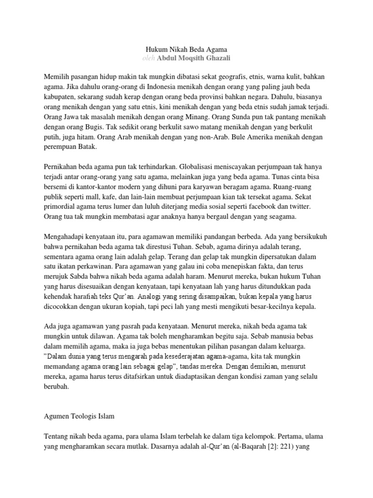 - Tafsir Baru Perkawinan Beda Agama Di Indonesia Oleh M Muhibuddin Pegawai Pada Pengadilan Agama Wonosari Pdf Download Gratis : Menurut Ahmad Nurcholish, Selain Dari Perspektif Legalitas Hukum, Dalam Perspektif Menurut Ahmad Sendiri, Terdapat Beberapa Daerah Yang Dinas Kependudukan Dan Catatan Sipilnya Bersedia Mencatatkan Pernikahan Beda Agama.