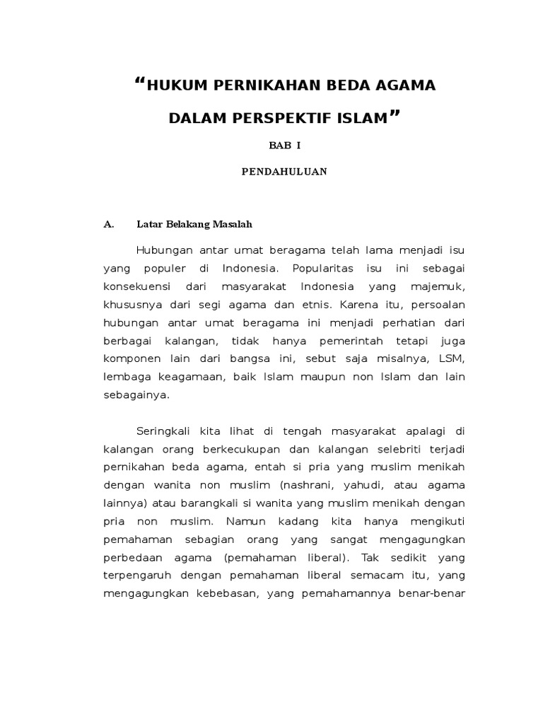 Perkawinan Beda Agama Research Papers Academia Edu. Islam memberi peraturan berbeda bagi pria dan wanita perihal menikah dengan yang tidak seiman. Pria dan wanita beda agama sering tertarik satu sama yang lain. Dalam fiqh telah dijelaskan hukum tentang perkawinan beda agama yaitu sebagai berikut : Apakah perkawinan tersebut tetap sah dan bagaimanakah hukumnya? Pandangan islam mengenai pernikahan beda agama dalam islam, menikah bukan hanya menyatukan dua manusia, melainkan ada aturan atauran yang harus diperhatikan, sehingga dengan aturan aturan itu menimbulkan adanya pernikahan yang sah dan tidak sah. Mengenai pernikahan beda agama, para ulama pun bersepakat mengenai hal tersebut. Bagaimana pandangan islam tentang perkawinan yang beda agama? Pernikahan beda agama dalam kehidupan manusia, setiap insan pasti akan menginginkan adanya pernikahan. Pernikahan beda agama menurut islam. Wakil ketua majelis dakwah dan pendidikan islam namun, sahnya menikahi perempuan berbeda agama di dalam alquran telah dijelaskan, bahwa karena yang termasuk ahlil kitab adalah bani israi dan mereka yang kedatangan taurat dan injil. Konsep dan pengertian pernikahan beda agama dan campuran • pernikahan islam melarang penikahan antara seorang pria muslim dengan wanita musyrik, dengan dalil, qs. Simak ulasan tentang √ pernikahan beda agama menurut islam dan √ hukum menikah beda agama dalam ajaran islam pada artikel berikut. Bila anda berada dalam keadaan tersebut, dan anda bingung harus bagaimana. Hal ini dijelaskan dalam fatwa majelis ulama indonesia. Lalu bagaimana hukumnya dalam islam?