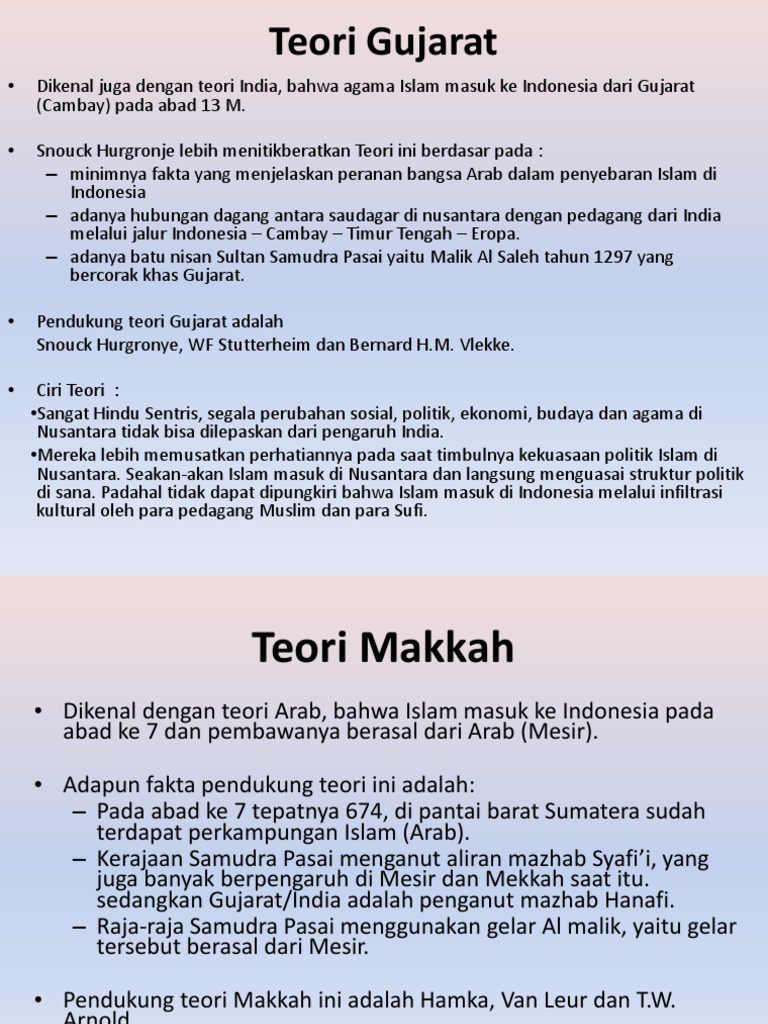- Sejarah Indonesia Teori Masuknya Islam Ke Nusantara - Teori Gujarat Diungkapkan Oleh Snouck Hurgronje, W.f Suttherheim, Dan B.h.m Vlekke.