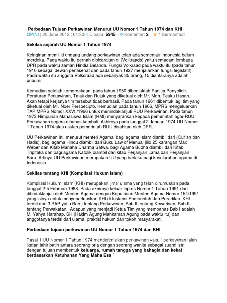 Pernikahan Dini Menurut Uu No 1 Tahun 1974. Ada tiga macam putusnya perkawinan menurut pasal38 uu nomor 1 tahun 1974 dan pasal 113 inpres nomor 1 tahun 1991 tentang kompilasi hukum talak ba'in kubra adalah talak yang terjadi untuk kedua kalinya, talak ini tidak dapat dirujuk dan tidak boleh dinikahi lagi, kecuali pernikahan itu. 1 tahun 1974 tentang perkawinan (pdf). Menikah dini hakikatnya adalah menikah juga, hanya saja dilakukan. Perkawinan adalah ikatan lahir batin antara seorang pria dan seorang wanita sebagai suami istri dengan definisi pernikahan dini. Sementara itu menurut uu no. Uu perkawinan no.1 tahun 1974 bab viii putusan pekawinan serta akibatnya pasal 38. Selanjutnya dalam kompilasi hukum islam di indonesia ditetapkan sebagai berikut : Sedangkan tujuan perkawinan menurut kompilasi hukum islam adalah untuk. Oleh mereka yang masih muda, seperti. Agar terjamin ketertiban perkawinan bagi masyarakat islam. Menurut uu pernikahan no 1 tahun 1974. Pernikahan dini merupakan fenomena social yang sering terjadi khususnya di indonesia. Menurut pasal 23 uu no. Sedangkan perkawinan menurut kompilasi hukum islam adalah akad yang sangat kuat dalam hal pernikahan tidak dapat dibuktikan dengan akta nikah, dapat diajukan isbat nikahnya ke pengadilan agama. Adanya perkawinan yang terjadi sebelum berlakunya uu perkawinan no 1 tahun 1974.