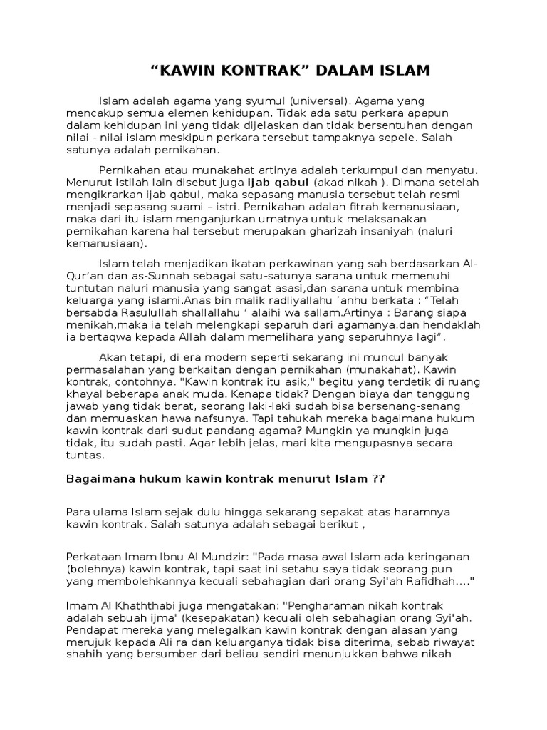 Pernikahan Kontrak Dalam Islam Indeed recently is being hunted by users around us, maybe one of you. Individuals now are accustomed to using the net in gadgets to view image and video information for inspiration, and according to the name of this post I will talk about about Pernikahan Kontrak Dalam Islam.