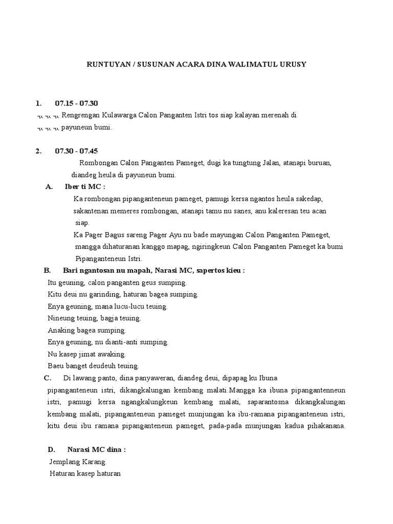 - Doc Susunan Acara Akad Nikah Putra Mk Academia Edu , Proses Ini Dilakukan Orang Tua Calon Pengantin Keluarga Sunda Dan Keluarga Dekat.